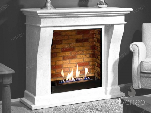 Биокамин Ivengo Kreta с порталом классической формы немного увеличенной столешницей за счет изящно изогнутых бортиков передней стенки. На столешницу этого камина вам удастся поставить больше нужных вещей, которые всегда должны быть под рукой, и украшений. При желании вы можете заказать оформление портала в двух цветах – черная столешница и белый портал. Либо заказать портал, изготовленный из массива дерева, а также декорирование очага “под кирпич” – такое оформление очага будет выгодно сочетаться с деревянным порталом.