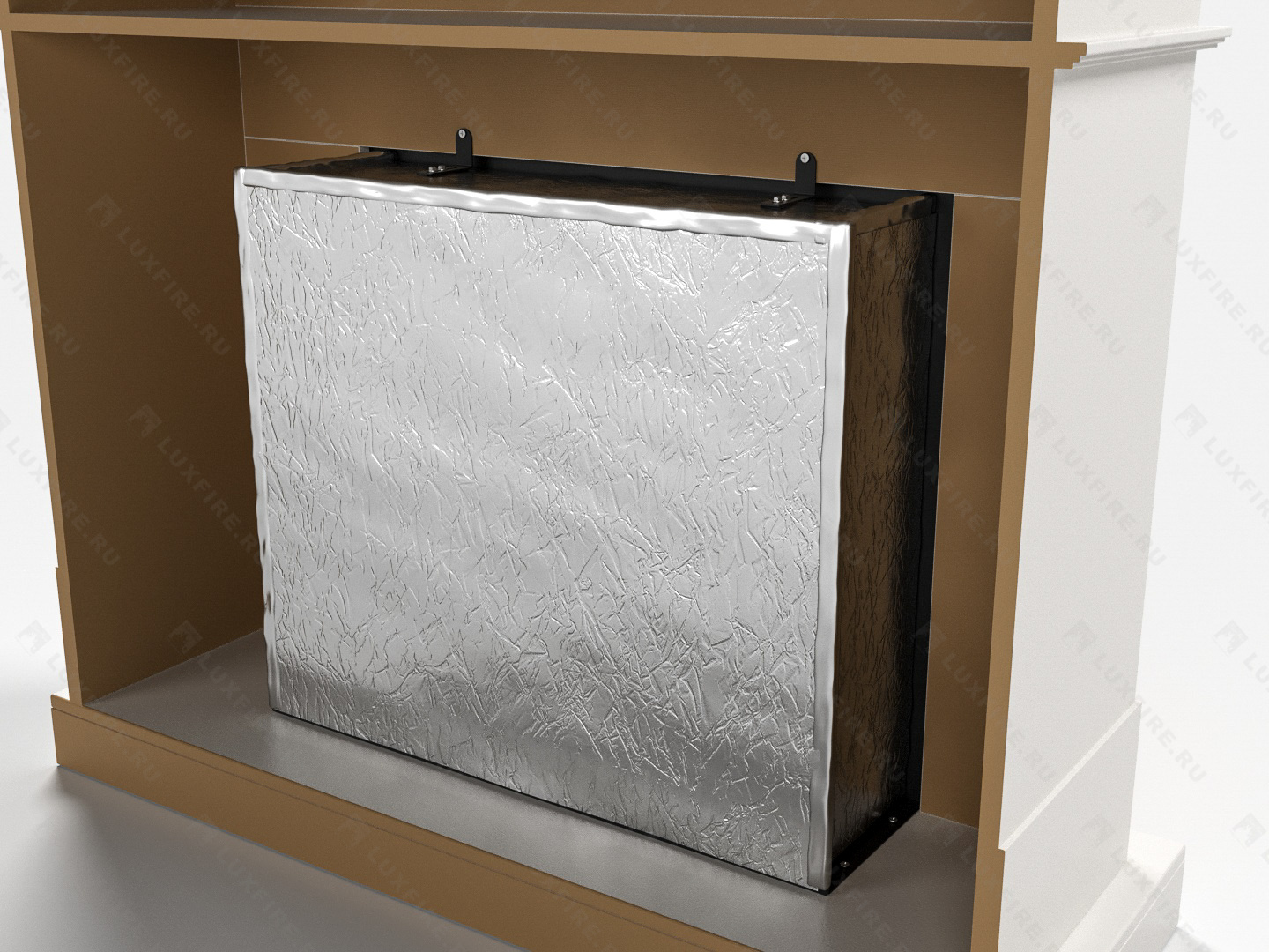 Представляет собой сборную окрашенную конструкцию из МДФ c портальным биокамином Lux Fire "Фаер Бокс 1-26"