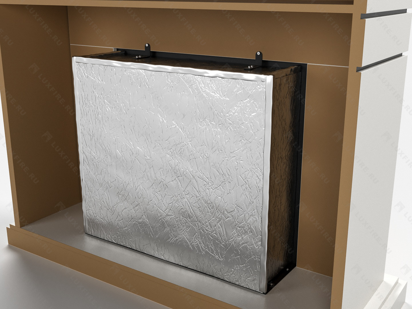 Представляет собой сборную окрашенную конструкцию из МДФ c портальным биокамином Lux Fire "Фаер Бокс 1-26"