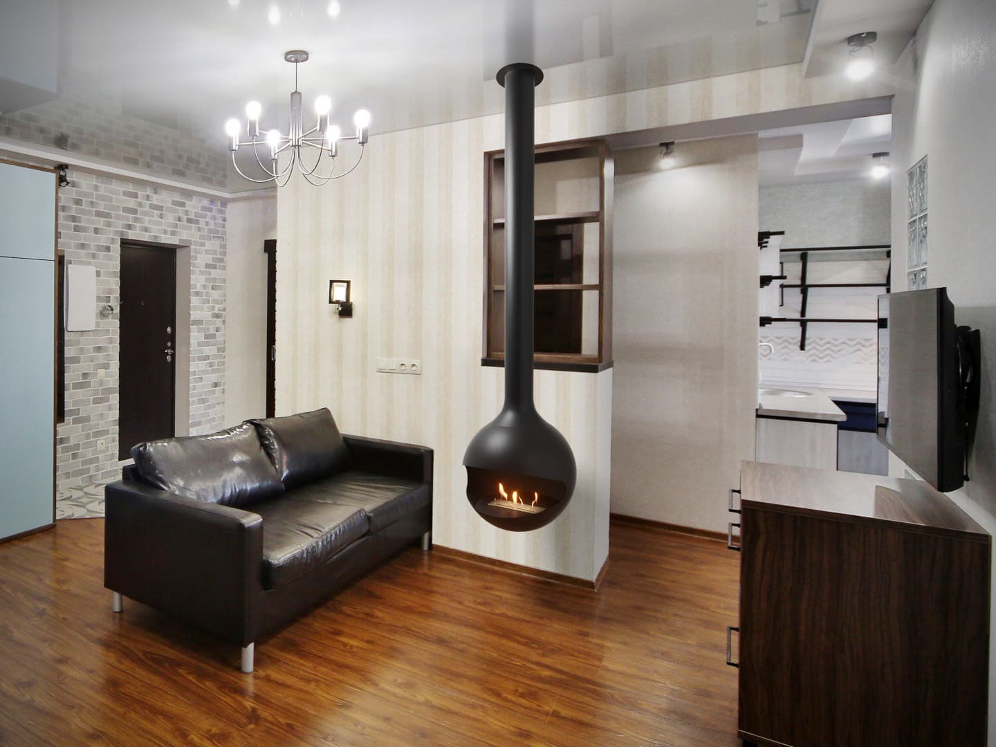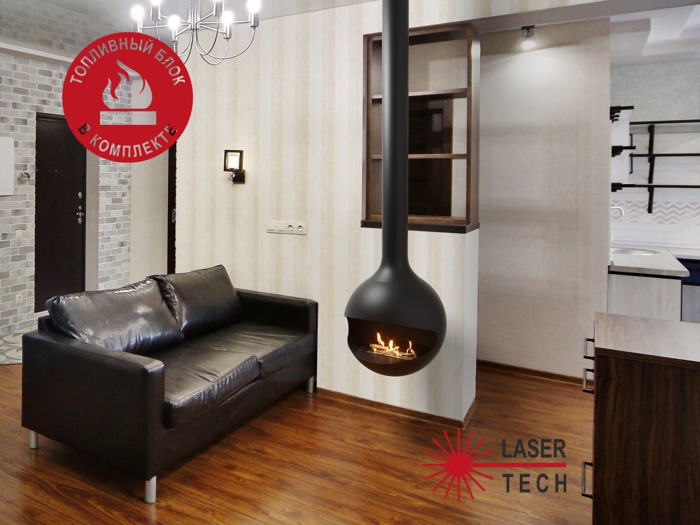 Биокамин "СФЕРА" крепиться к потолку, изображая дымоход традиционного дровяного камина. Но конечно это не дымоход или вентиляция, тем более, что восходящая верх труба закрыта металлическим диском сверху. Во-первых, это позволяет удобно и надежно закрепить биокамин к потолку в помещении. Во-вторых, закрытый "дымоход" защитит потолок от воздействия тепла от горения биокамина.