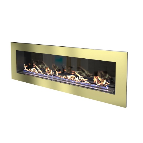 Биокамин золотого цвета, который прекрасно подойдет как встраиваемый вариант для украшения вашего дома.