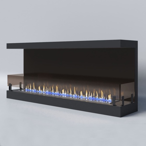 Декоративное стекло — крепится на всю заднюю стенку очага. За счет своего зеркального отражения, пламя визуально становится в 2 раза больше и кажется, что камин горит еще ярче.