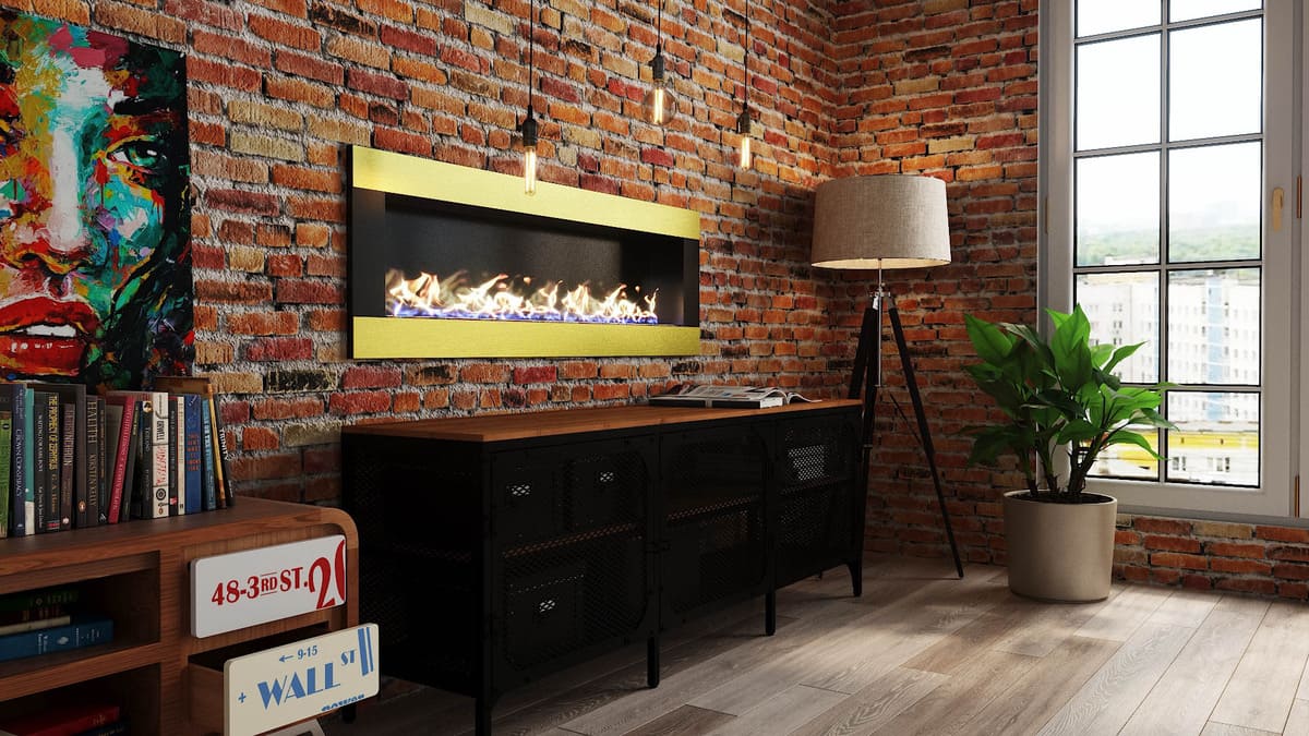 Биокамин золотого с черным цвета, который прекрасно подойдет как встраиваемый вариант для украшения вашего дома.