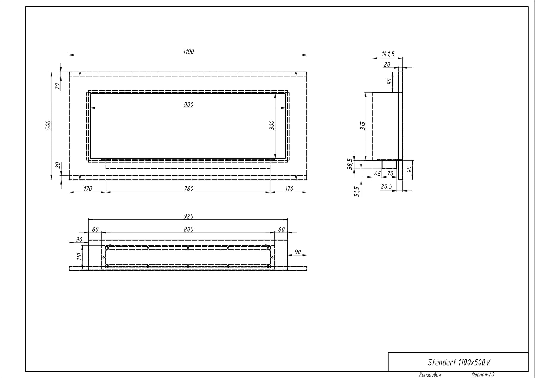 Настенный биокамин «Лофт 1100V» изготовлен из стали и нержавеющей стали, окрашен термостойкой порошковой краской.