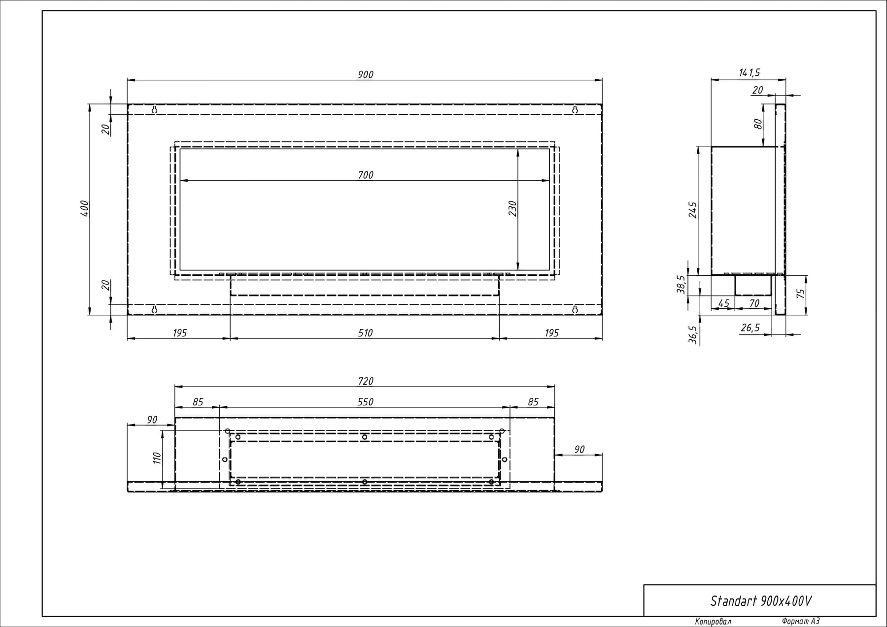 Встраиваемый биокамин «Лофт 900V» изготовлен из стали и нержавеющей стали, окрашен термостойкой порошковой краской.