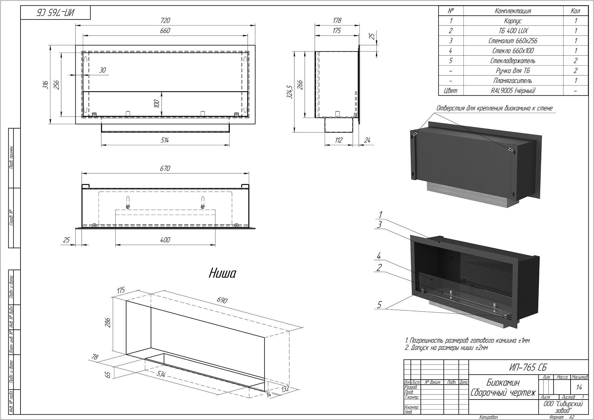 Встраиваемый биокамин / очаг Venera 700 (SappFire)