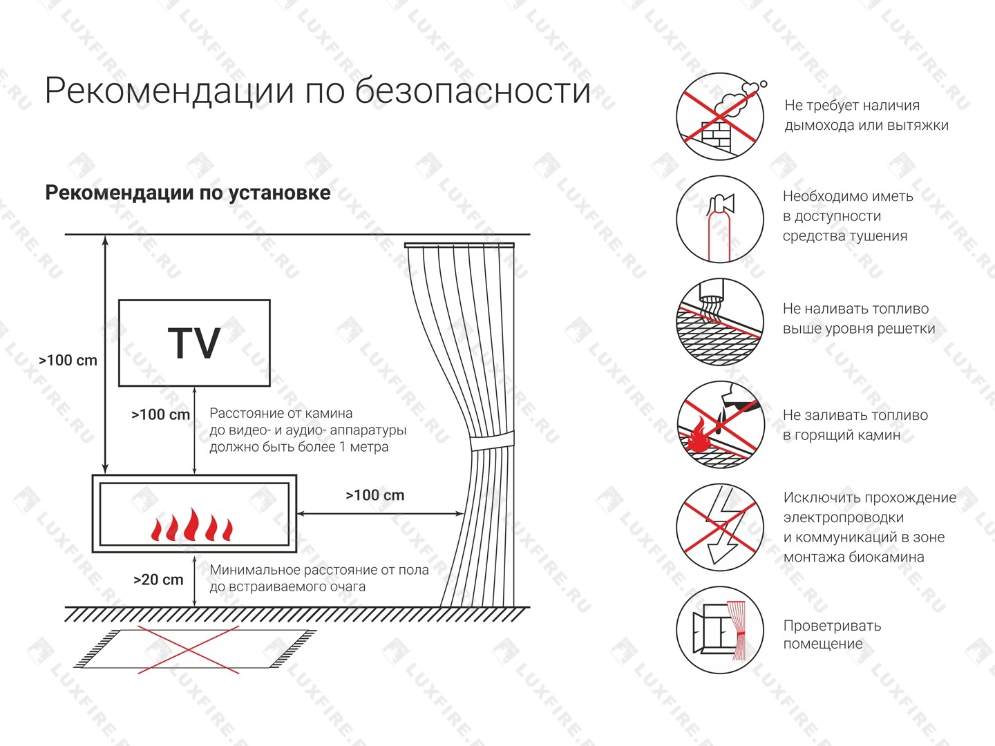 Представляет собой сборный металлический каркас с топливным блоком Lux Fire 500 М, закрепленный на 4 дистанционных держателях к защитному стеклу..