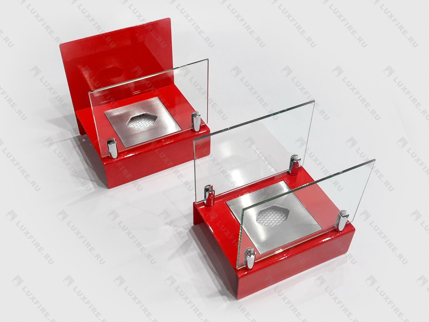 Представляет собой сборную модель из металлического корпуса и задней стенки с топливным блоком Lux Fire 100-1 огражденным с одной стороны защитным стеклом прямоугольной формы на дистанционных держателях размером (ВхШхГ): 120х180х4 мм