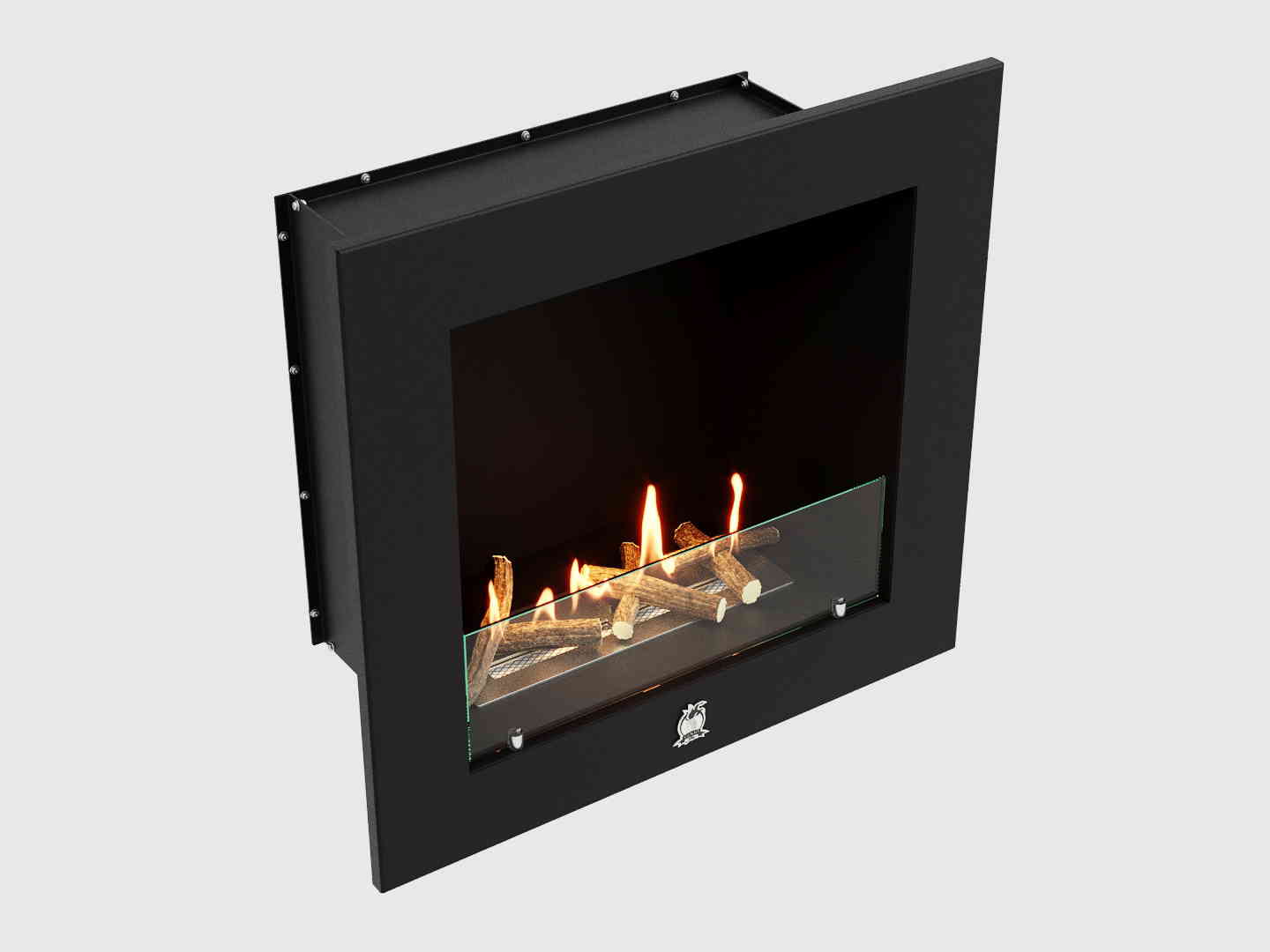 Открытый с фронтальной стороны камин на биотопливе предназначен для размещения в порталы, стены, ниши или специальные короба.