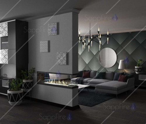 Торцевой сквозной очаг 1400 SappFire – это новинка в современном интерьере. Изделие отличается безопасностью, поскольку работает на экологически безопасном топливе, не выделяющих вредных веществ при сгорании. Каркас выполнен из качественной стали, окрашенной огнеупорной краской, он имеет более пропорциональные габариты, более длинную единую линию пламени.Биокамин выгодно отличается стоимостью от своего аналога торцевого сквозного очага 1400. Ощутите на себе все прелести от эксплуатации Торцевого сквозного очага 1400 SappFire. Решение приобрести биокамин столь большого размера, все же позволит вам сэкономить место в квартире, если вы встроите его в специальную нишу или повесите на стену.