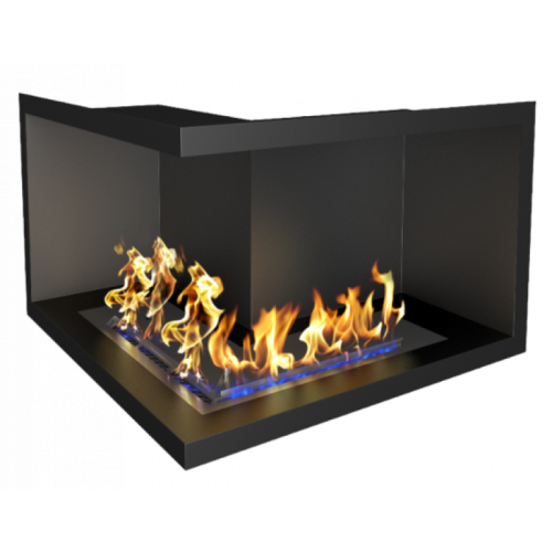 Встраиваемый биокамин Zefire Standart 700 (Стандарт 700) для угловой стены, угловая форма, черный металлический корпус с термостойкой порошковой окраской. Горелка из нержавеющей стали с ручным управлением.
