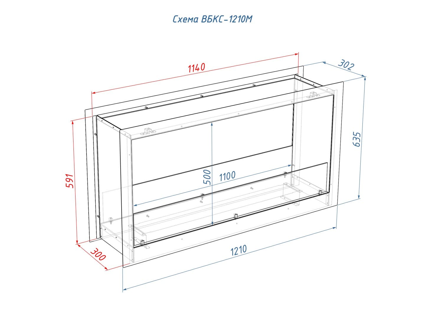 Описание встраиваемого биокамина Lux Fire Сквозной 1210 М
