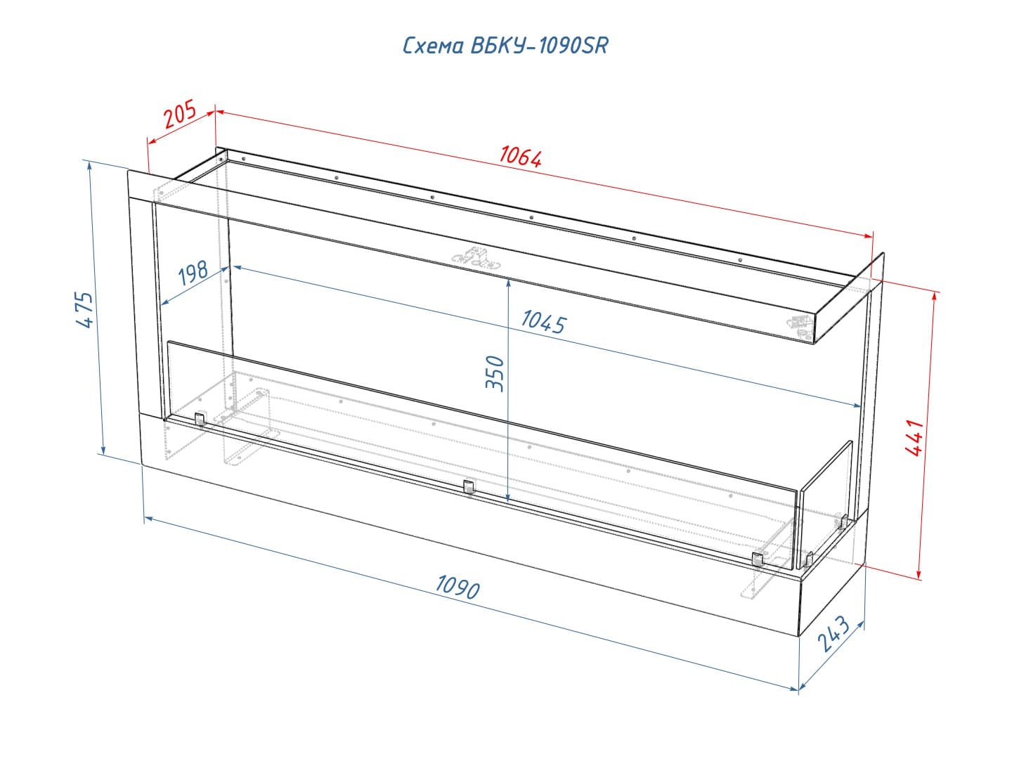 Описание углового биокамина Lux Fire 1090 S (правый угол)