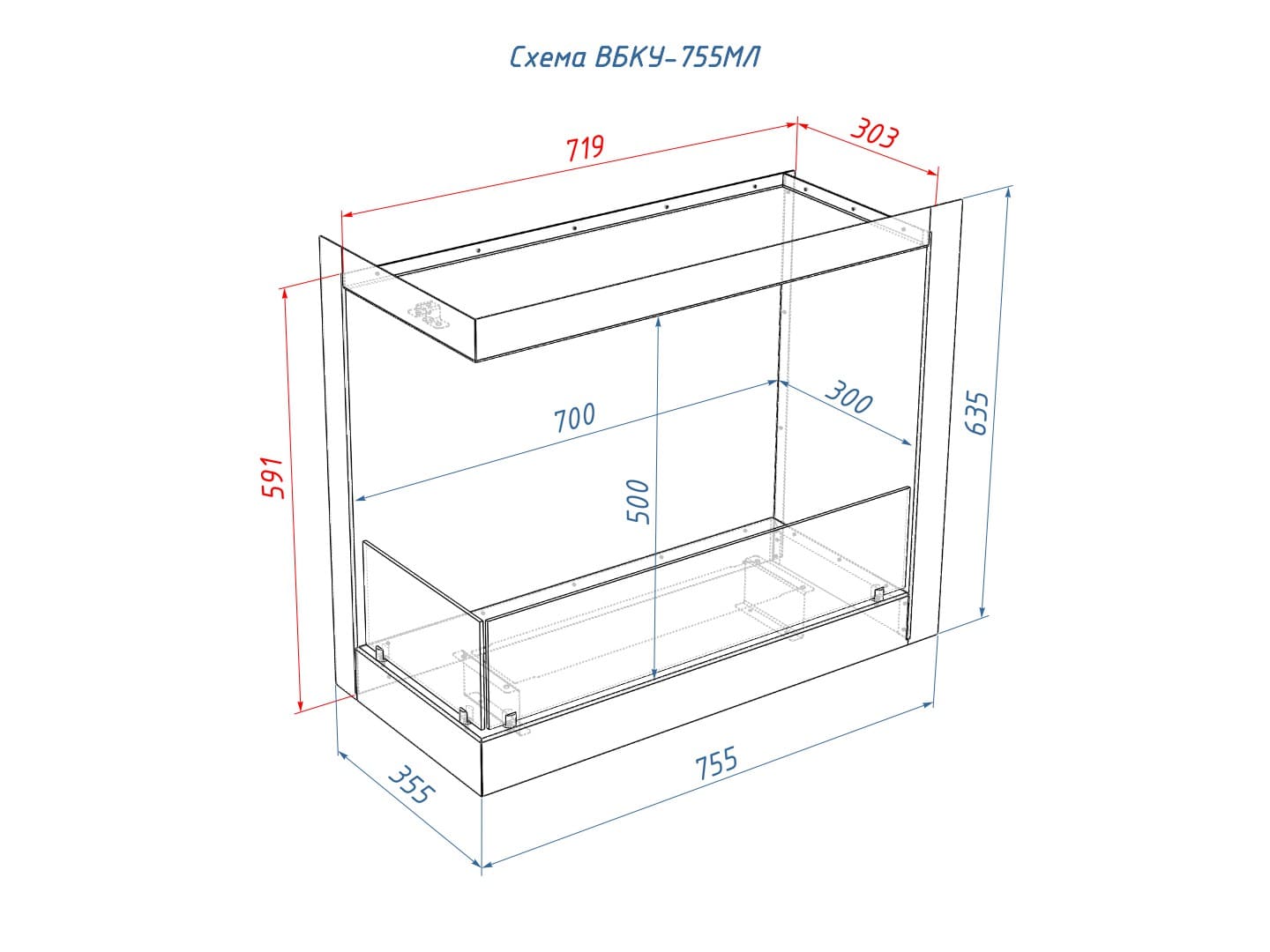 Описание встраиваемого углового биокамина Lux Fire 755 M (левый угол)