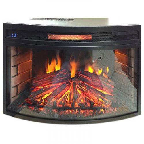 Основу очага составляет металлический короб, выполненный в черном цвете. Передняя его часть оформлена при помощи выпуклого панорамного стекла. Это позволяет придать изделию более элегантный вид и расширить угол обзора на внутреннее пространство топки. Верхняя часть лицевой панели оформлена пластиковой решеткой. Также тут присутствует панель управления функциями и небольшой LCD-дисплей.